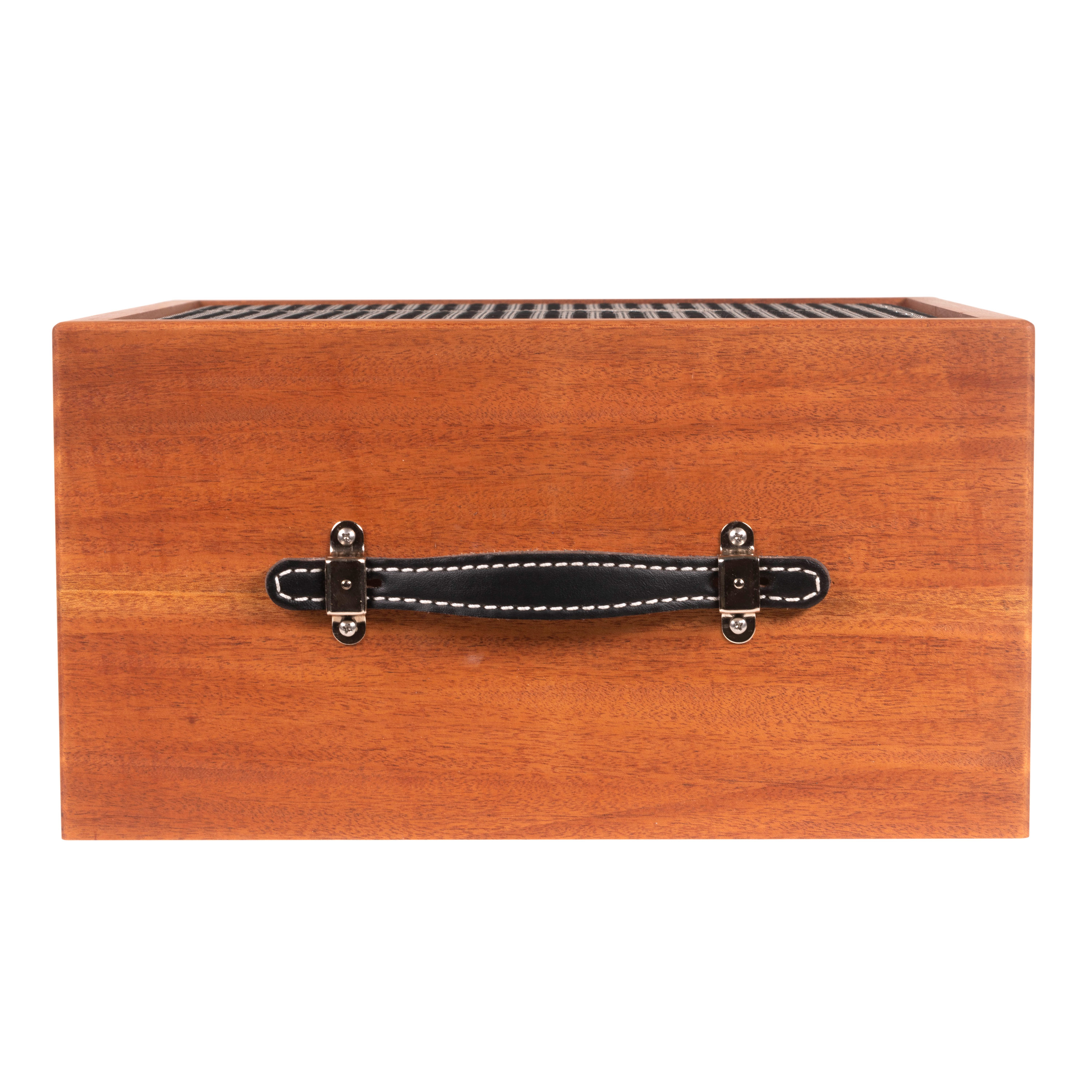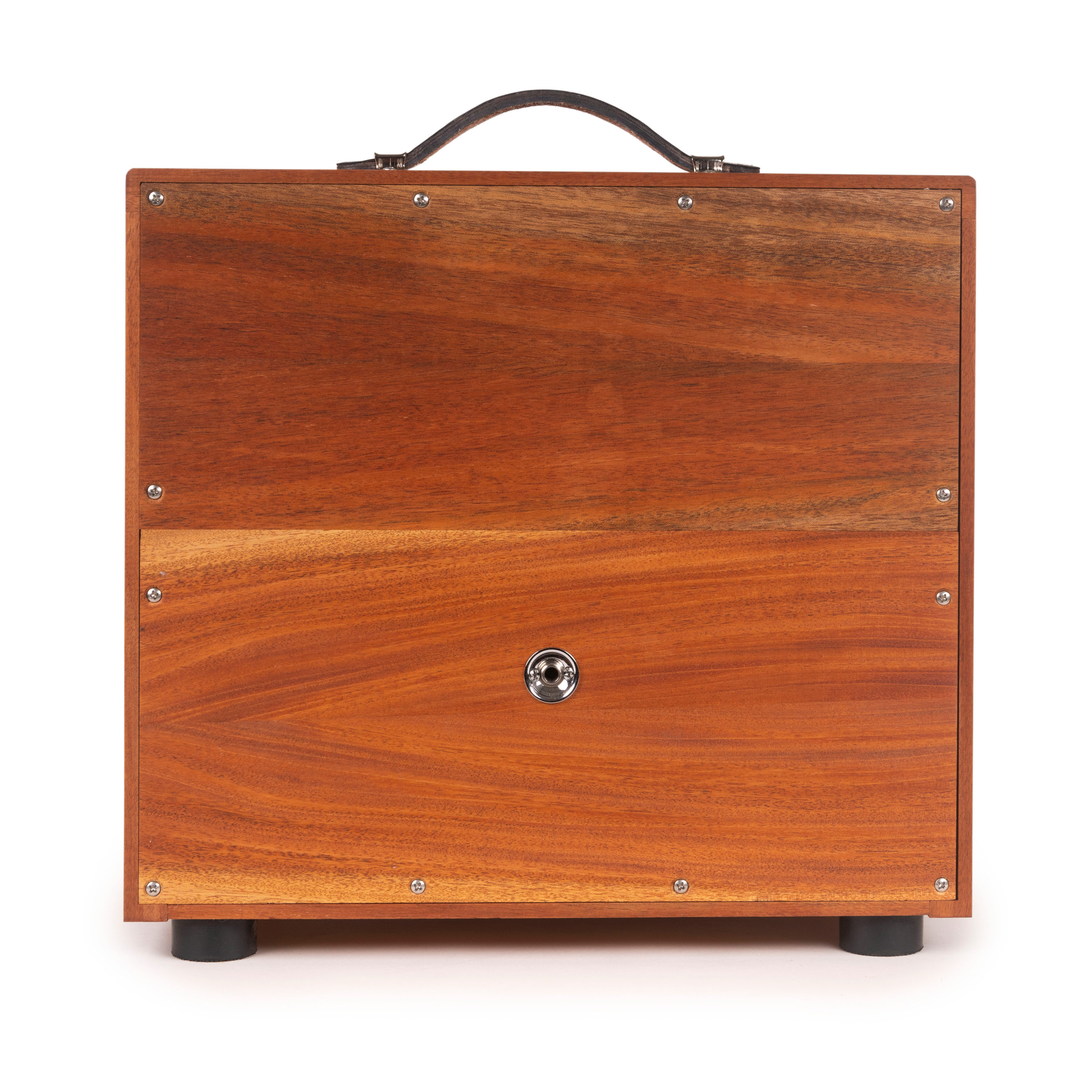 Not only do these cabinets look amazing, they're also sustainably made. All of the mahogany is from premium off-cuts from Taylor's guitar manufacturing process. Rather than throwing this beautiful wood away, each piece is precision CNC-routed into the interlocking speaker cabinet walls.