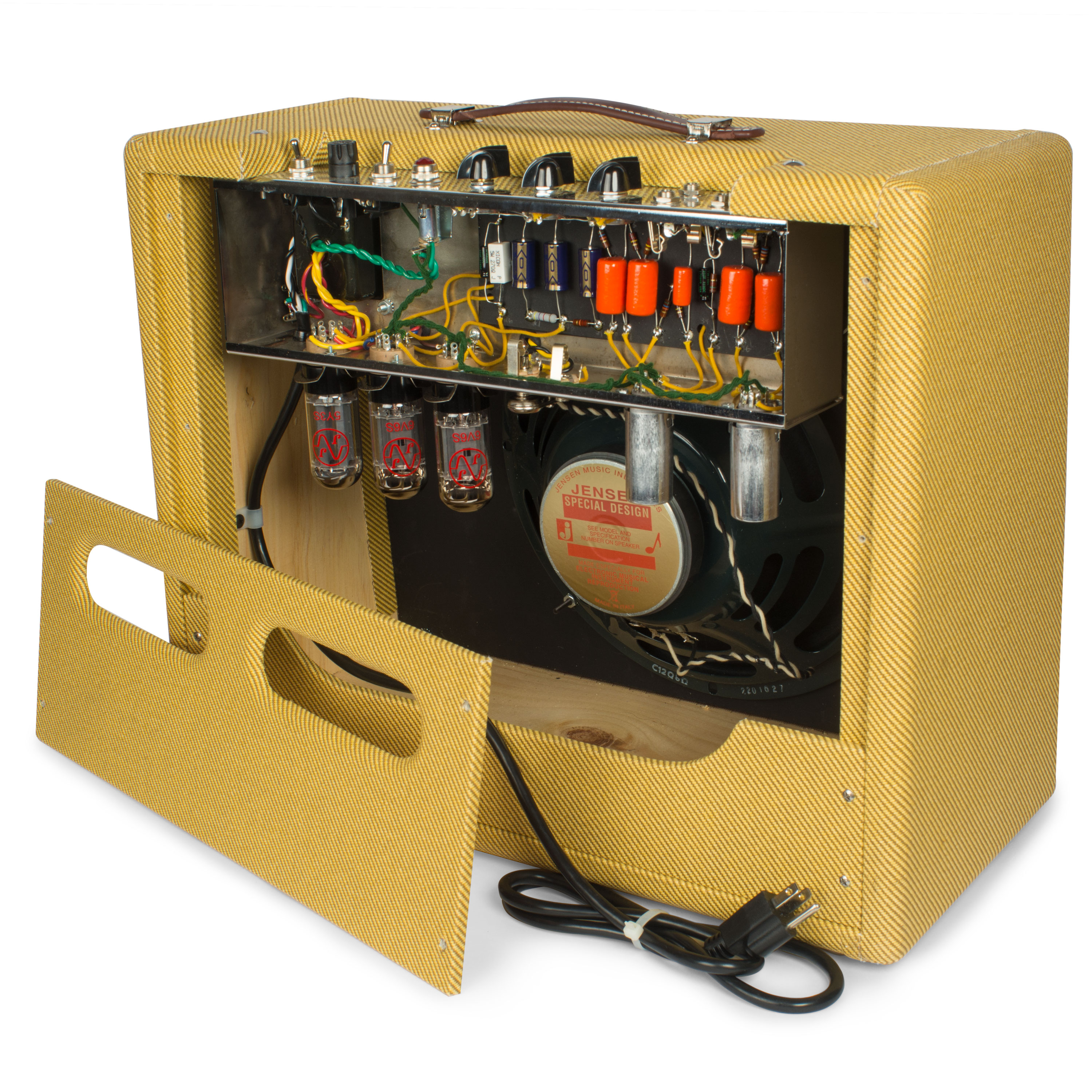 • Top-shelf 6V6, 12AX7, 12AY7, 5Y3 tubes and vintage spec transformers to give your amp the perfect vintage tone