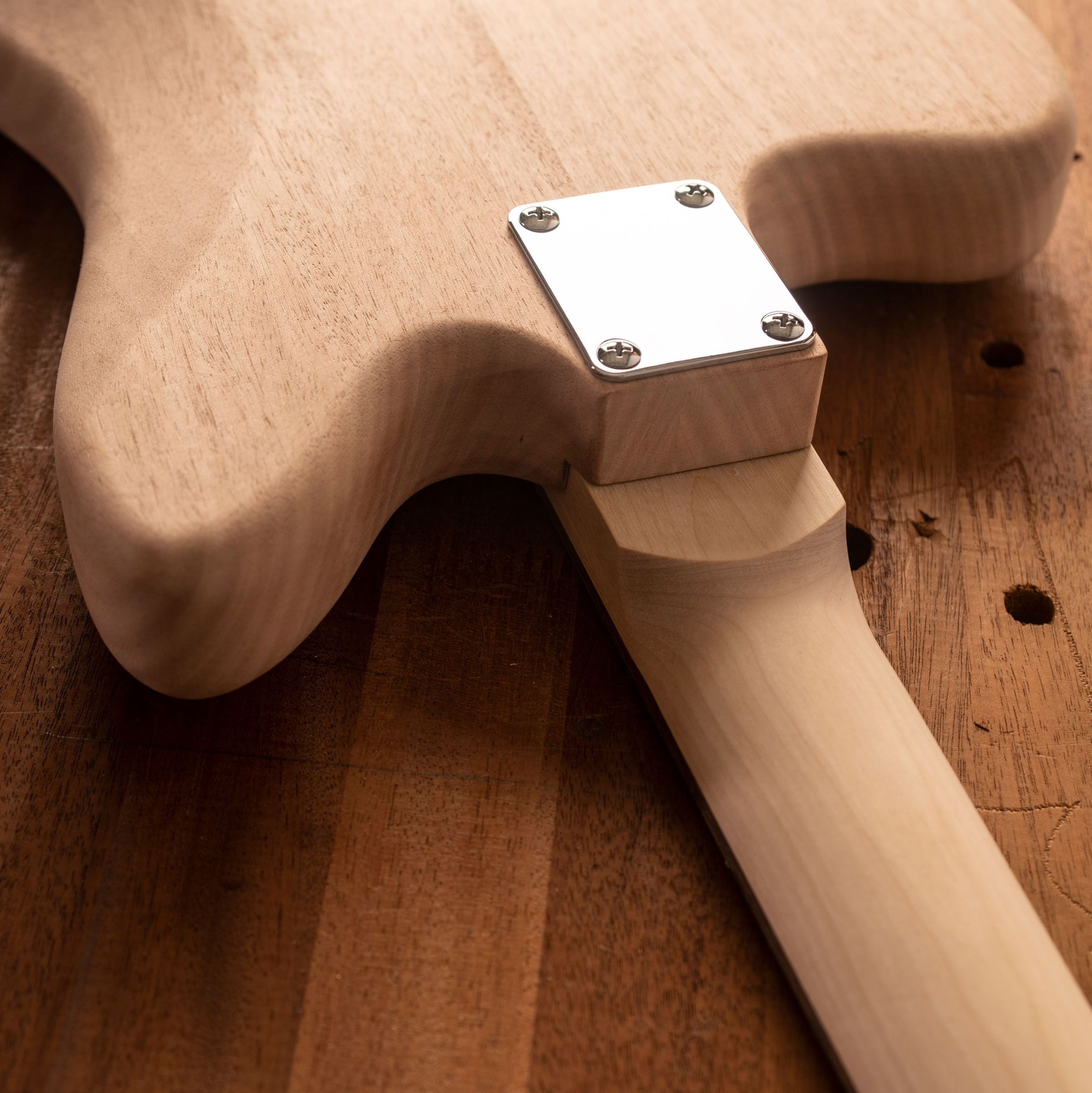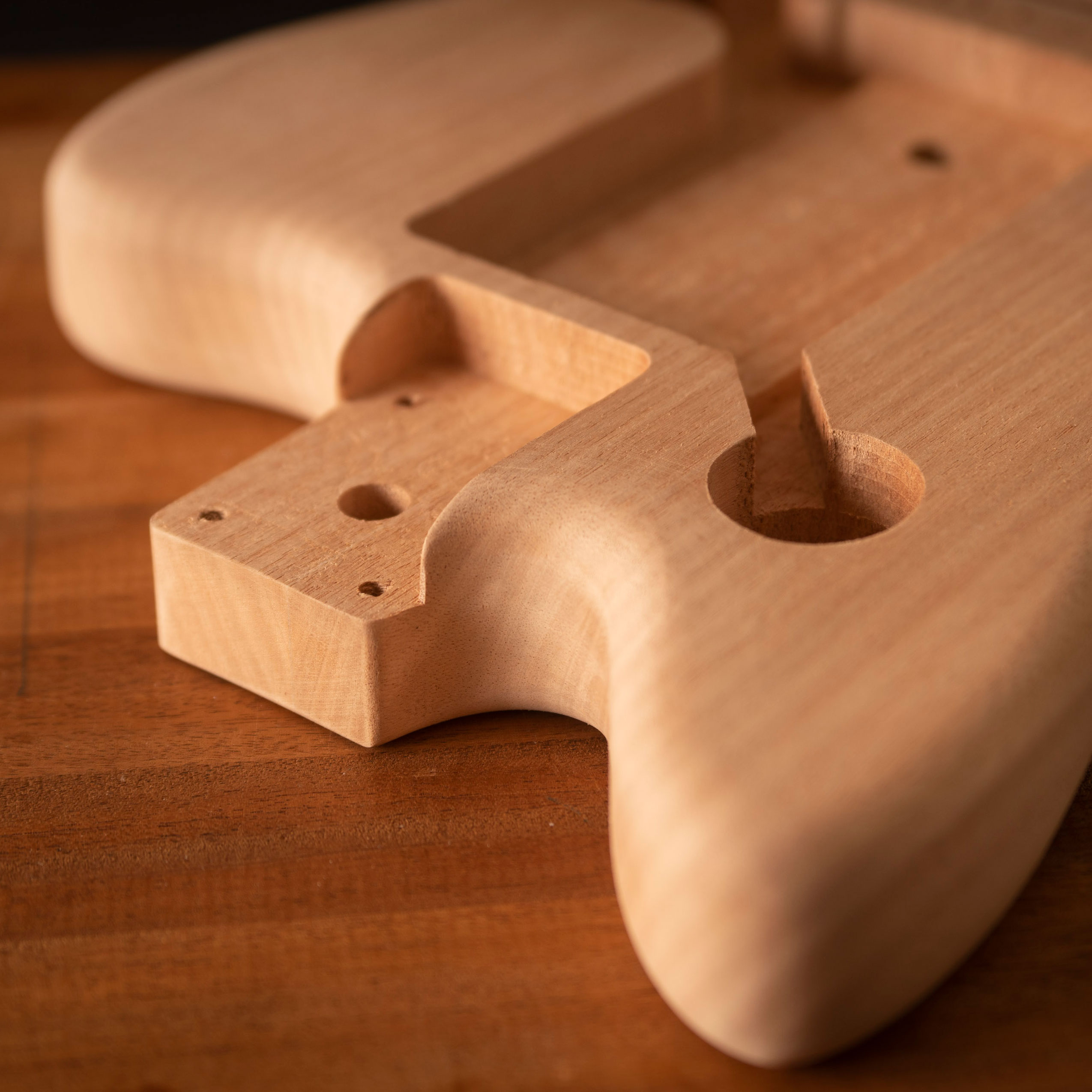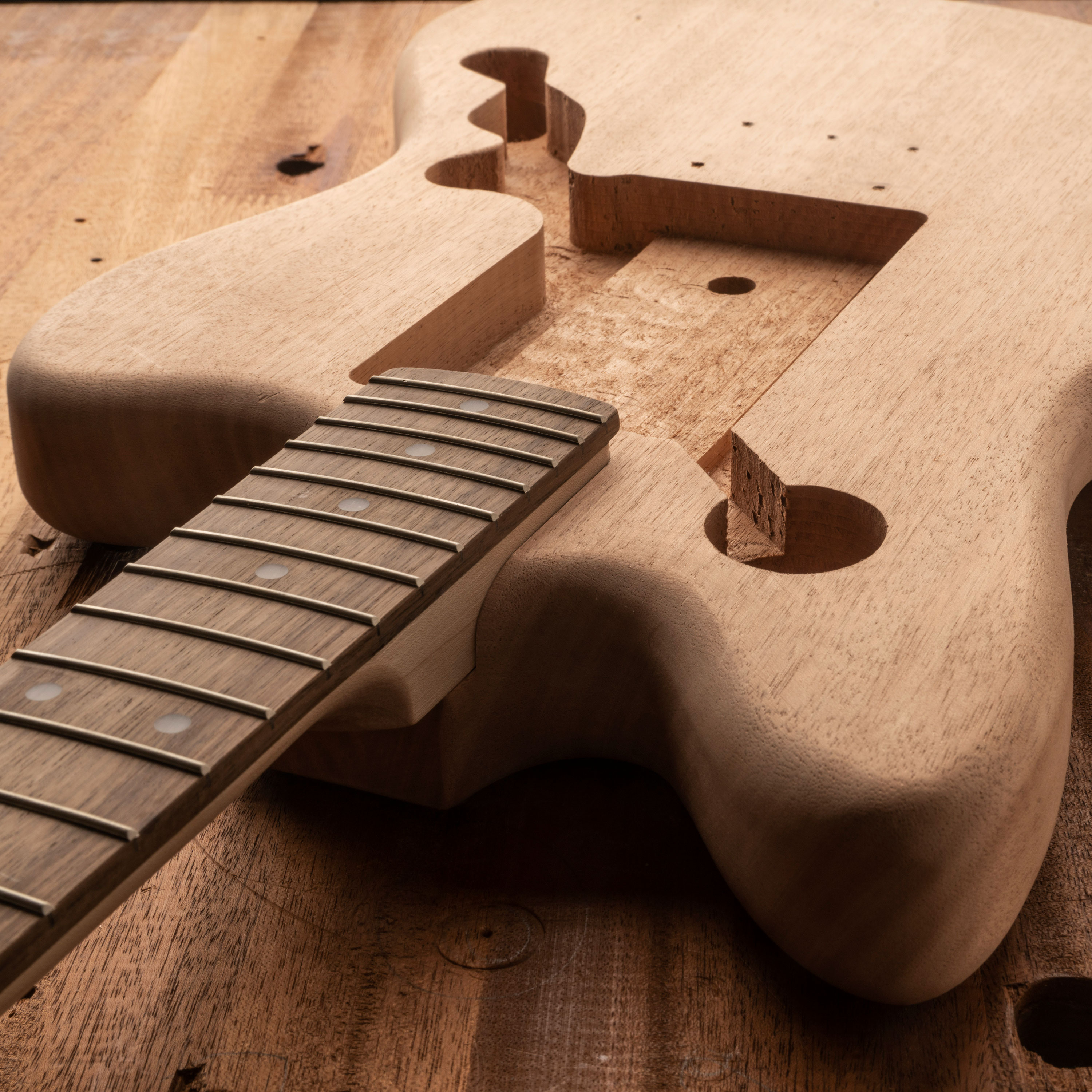 The neck is matched to each body for a solid connection and easy installation. The routing is clean and the bridge holes are drilled in the perfect location. With minimal prep you're ready to apply the finish.