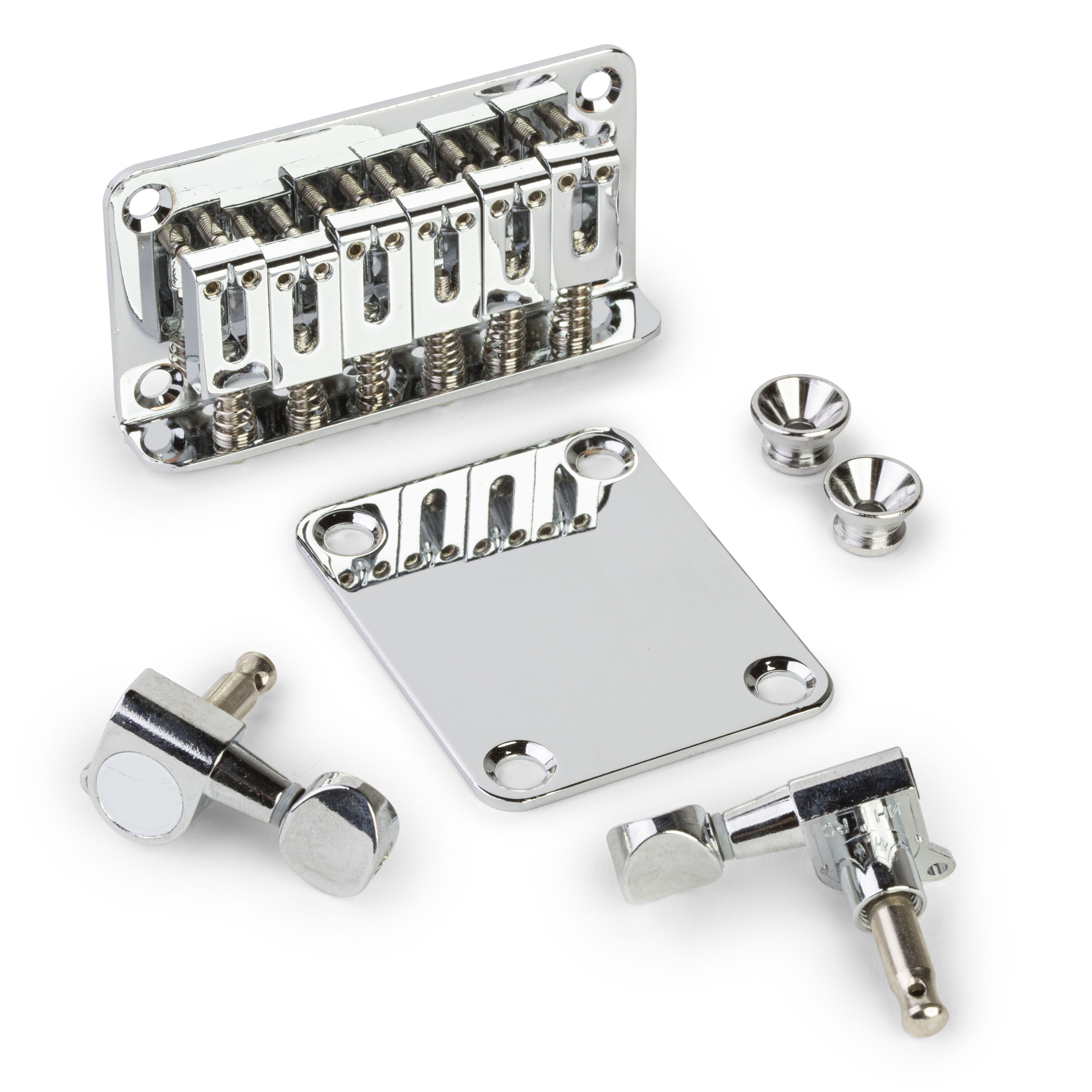 • Chrome plated hardware—from sealed tuners to strap buttons