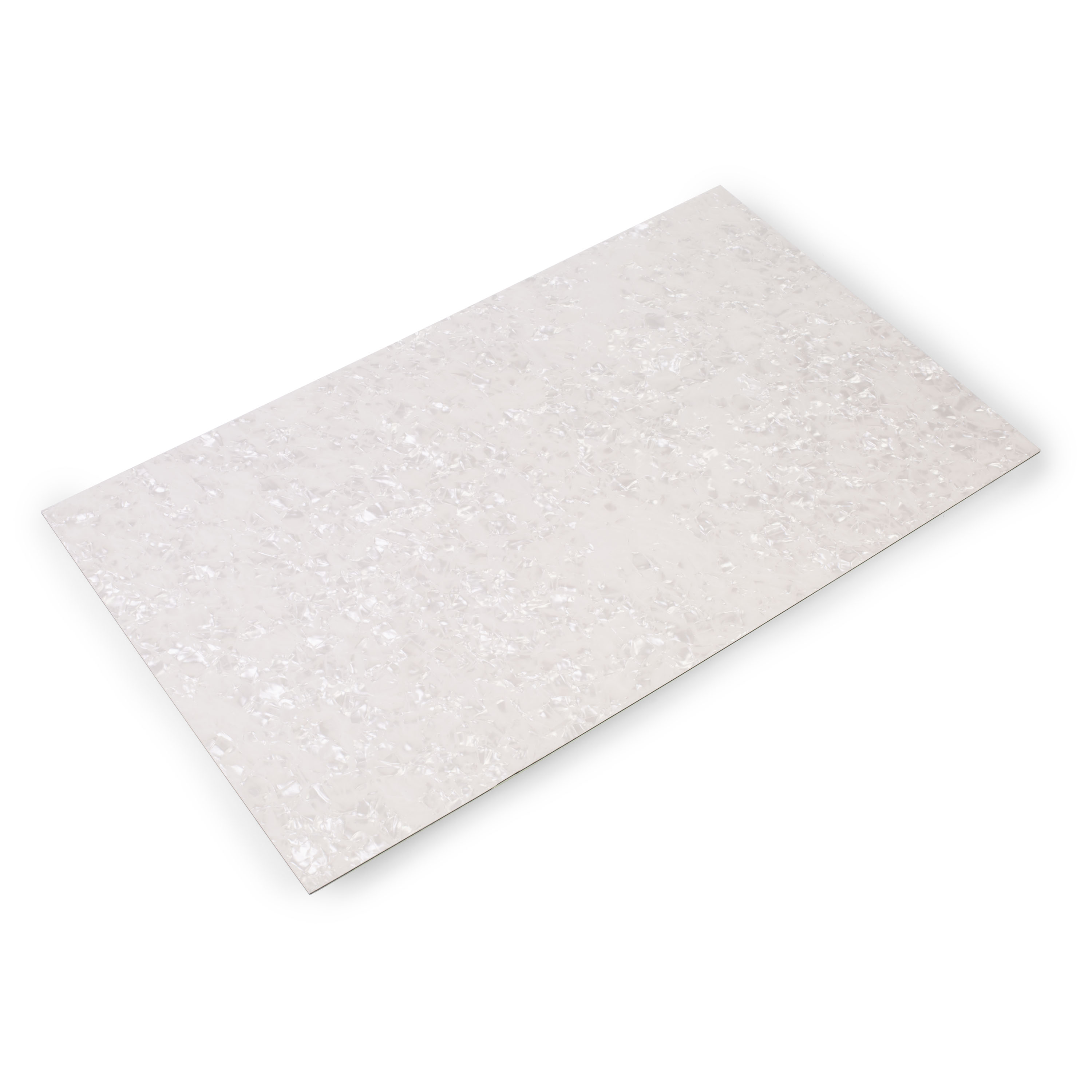 Pearloid/white/black/mint 4-ply laminated pickguard material for making replacement and custom pickguards and coverplates.
