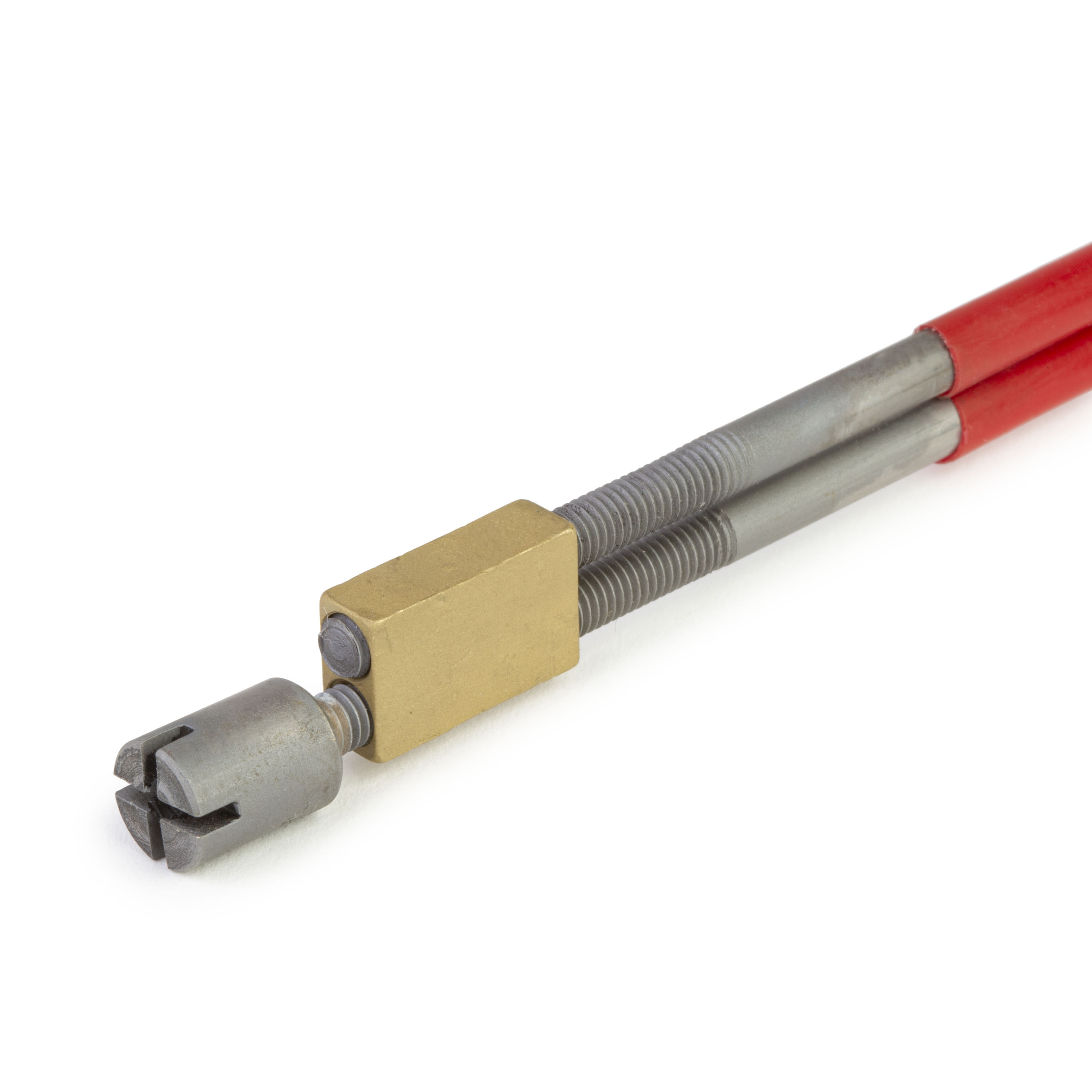 Our Hot Rod neck adjustment system features twin rods in threaded brass collars. The stainless steel active rod turns for smooth neck alignment, with 2-way action. The Hot Rod requires an access cavity for the adjustment nut, and a straight 7/32"-wide x 7/16"-deep slot (measured from the bottom of the fretboard) for installation.