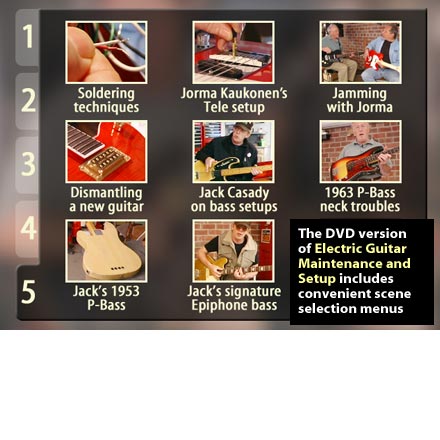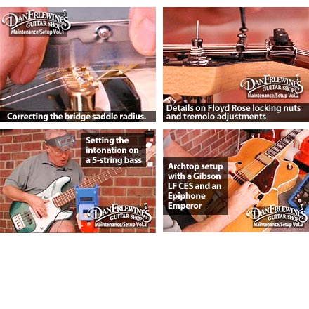 Useful to pros repair shops as well as players. Dan demonstrates some techniques from his book "How To Make Your Electric Guitar Play Great!" and beyond. Each DVD is 2 hours.