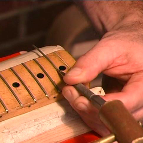 Quality fret dressing and re-fretting with basic tools, on a budget, and in a "home-shop" situation.