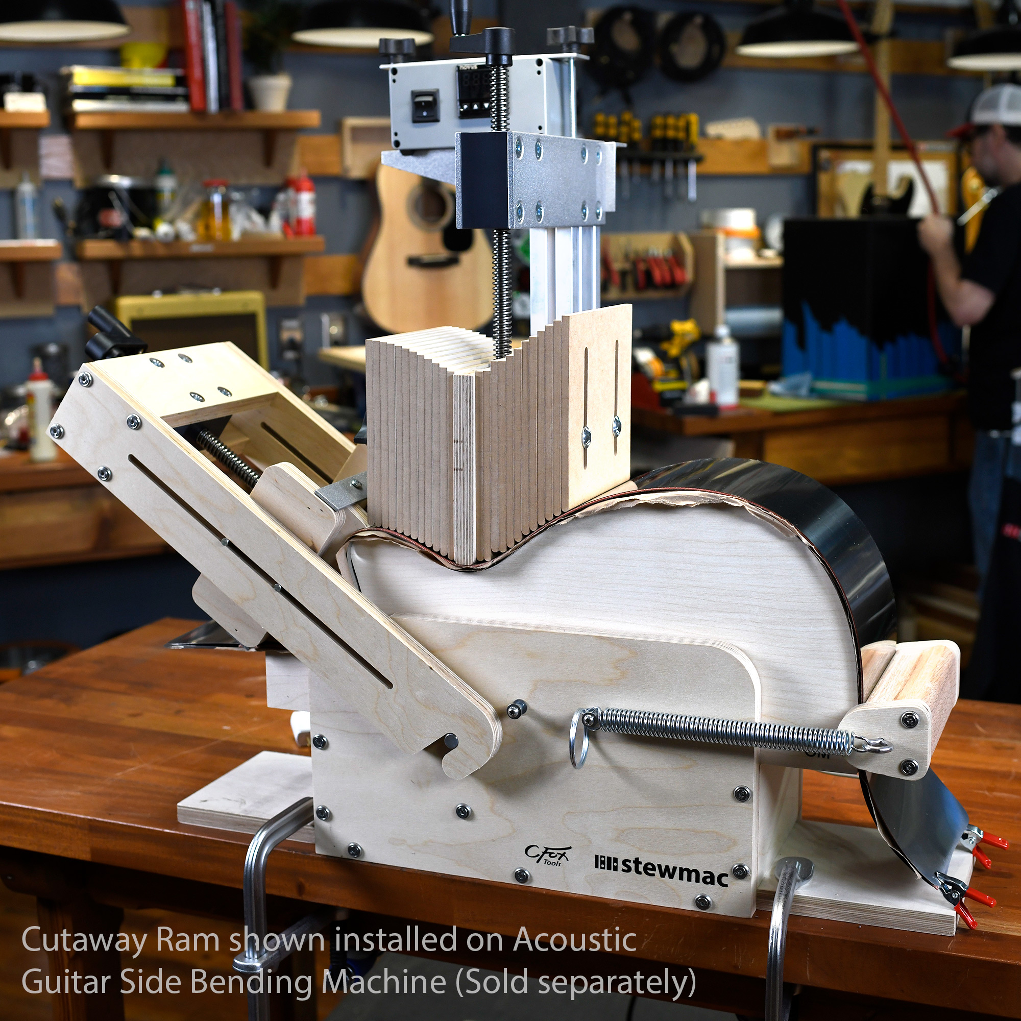 The Cutaway Ram instantly makes our Side Bender even more versatile, with no mods needed. You can change cutaway and non-cutaway forms in seconds. It's just one step to install it on the Bender, and you're ready to build a completely different guitar.