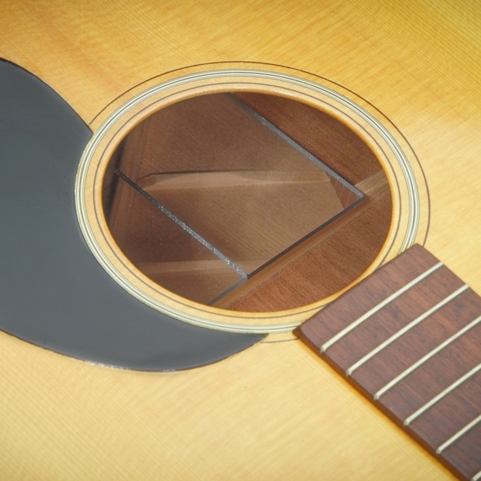 When unfolded inside the guitar, it gives you a 7-1/2" x 12" flat viewing surface, for the big picture of the guitar's interior. Made of nonbreakable mirrored acrylic, it frees both your hands for the job. Supplied untaped.