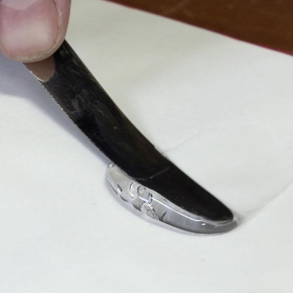 When using palette knives, warm the glued area first to help soften the bond. Be careful not to use a hot knife around finish.