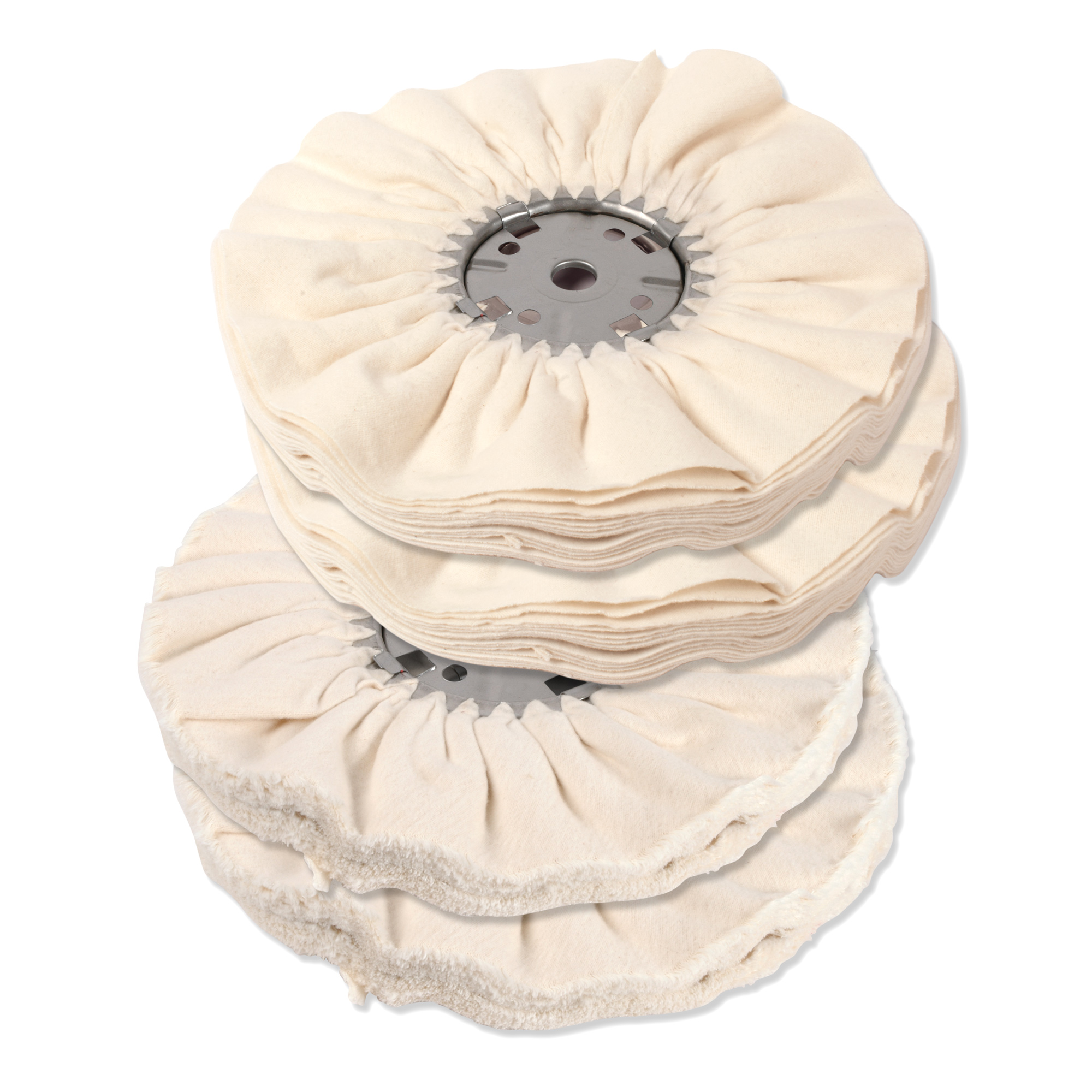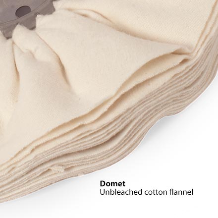 Big 14"-diameter buffing wheels where chosen especially for instrument finishing. Our Complete Buffing Outfit includes 2 of each: Canton flannel wheels for coarse and medium compounds, and 2 Domet flannel wheels for fine compound for an extra-high gloss. For maximum buffing surface, up to three wheels can fit on each side of the arbor (four wheels are included with the outfit). Additional wheels are sold separately.