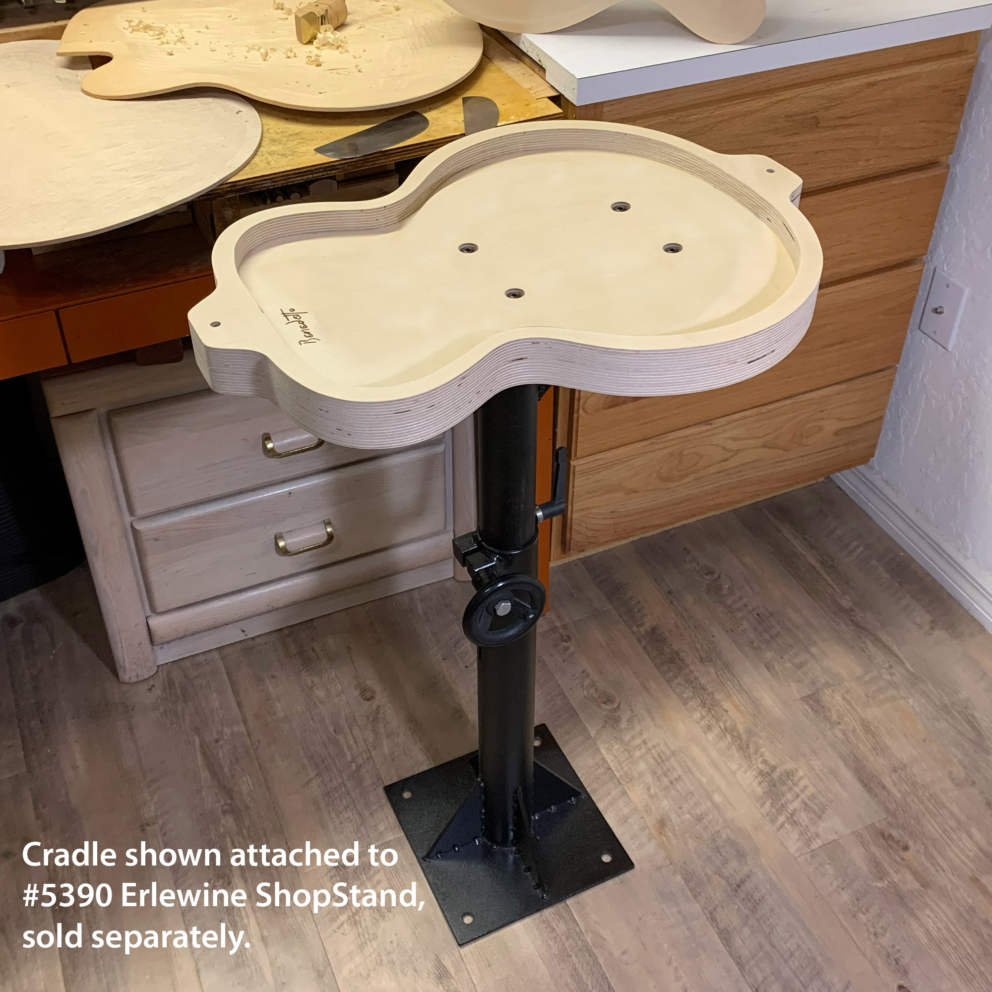 The cradle is pre-drilled to mount securely to our Erlewine ShopStand to give you complete control. You can spin the cradle 360-degrees and raise and lower it to the exact height you need to create the perfect arch. The arduous task of carving has never been easier.