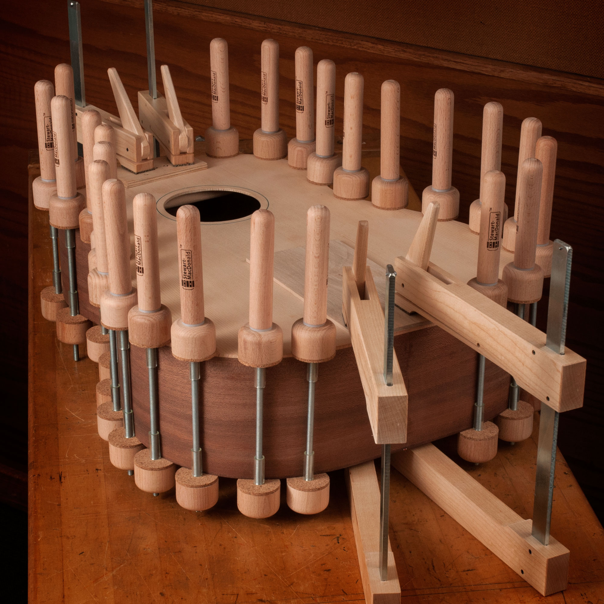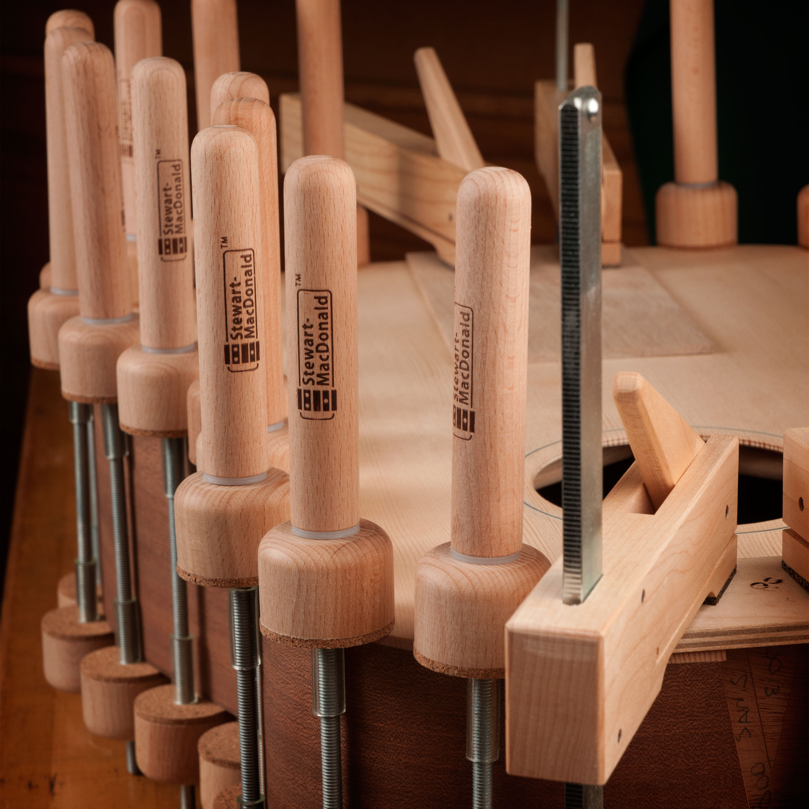 Quality clamps made of hardwood and steel, in the right quantities you'll need to build an acoustic guitar kit.