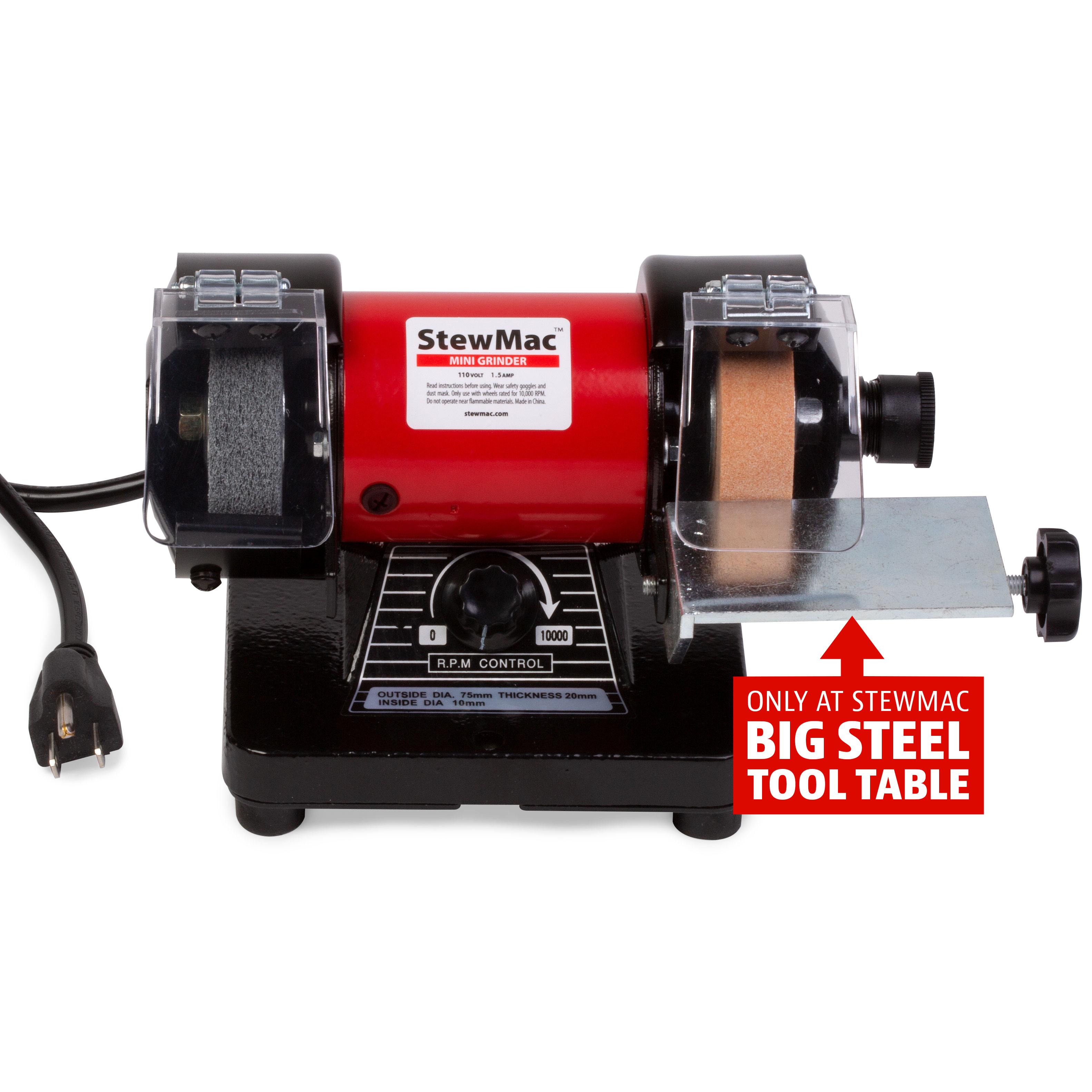 We added a custom steel table to our Mini Grinder, created solely to support the Ultimate Scrapers while sharpening. These beefy scrapers are thicker than standard scrapers, and with two cutting edges they present some challenges when it comes to sharpening. If you use our Ultimate Scrapers, then our Mini Grinder is the tool you need for a quick and accurate edge.