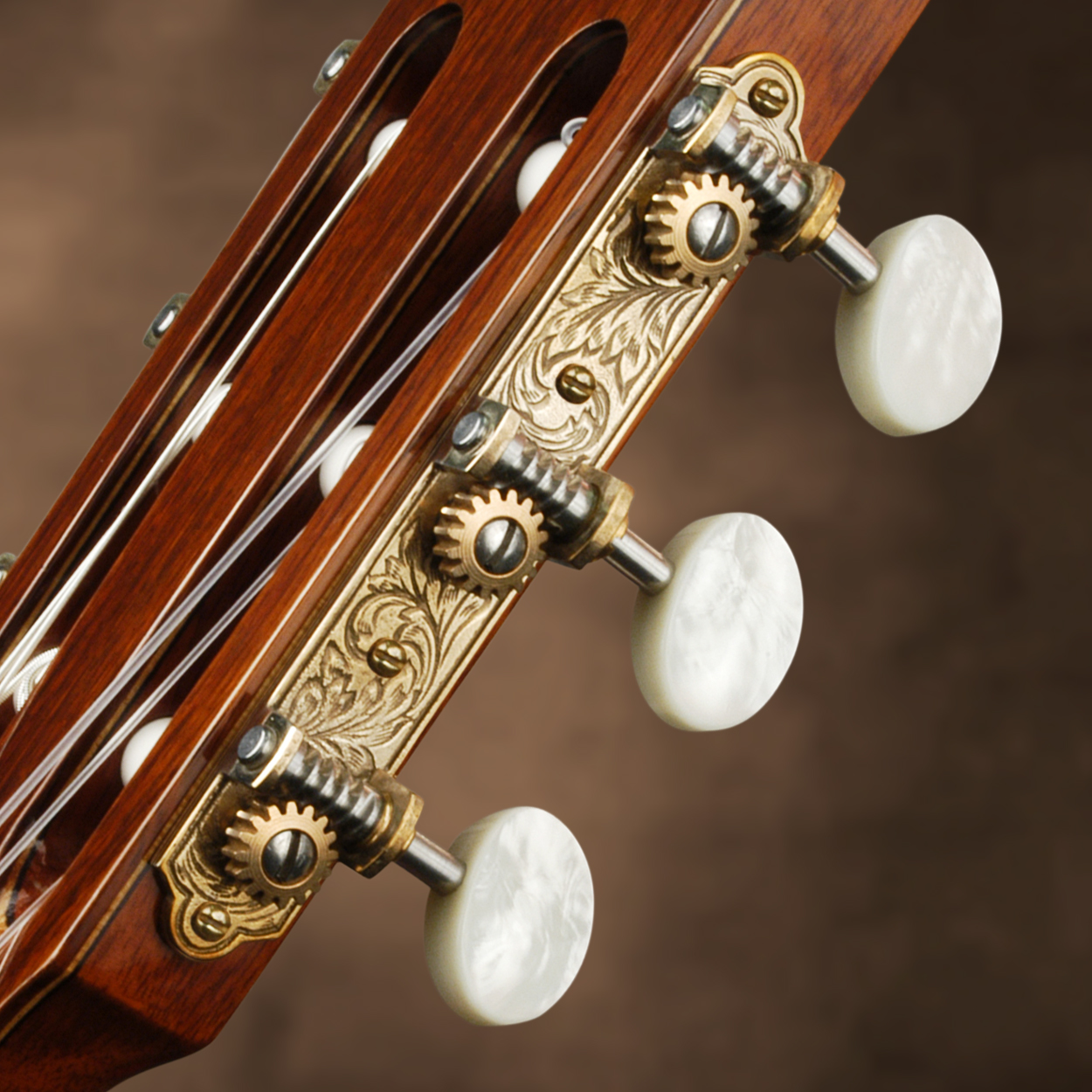 Beautiful Sloane classical tuners are first choice for many fine concert guitars.