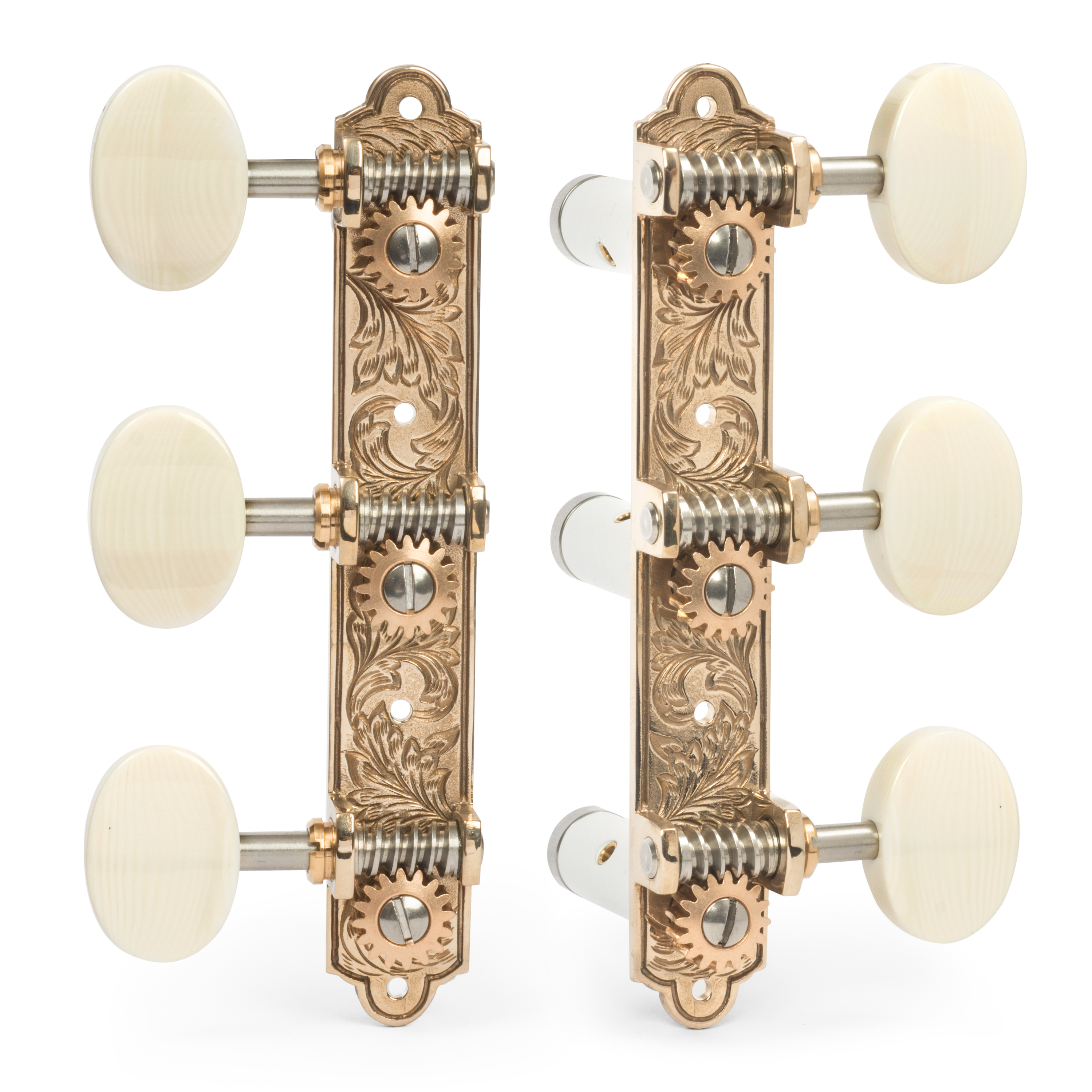 Each set includes a pair of 3-left/3-right tuning machines with mounting screws.