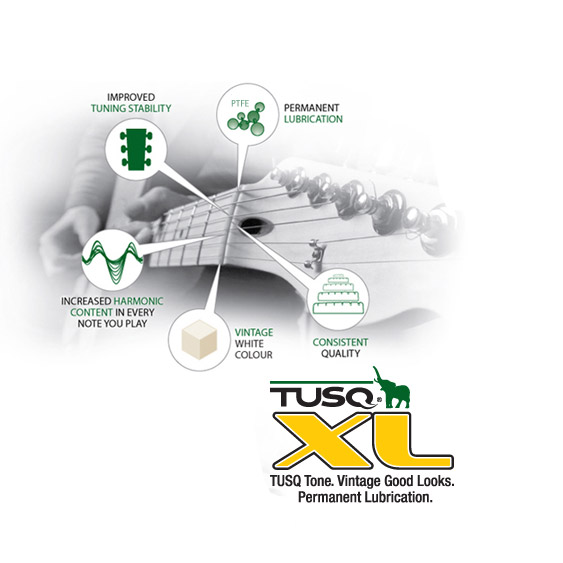 Extra slippery: TUSQ XL® is impregnated with Teflon® (500% more slippery than graphite). During tremolo bends, the strings slide in the slots, returning to accurate pitch.