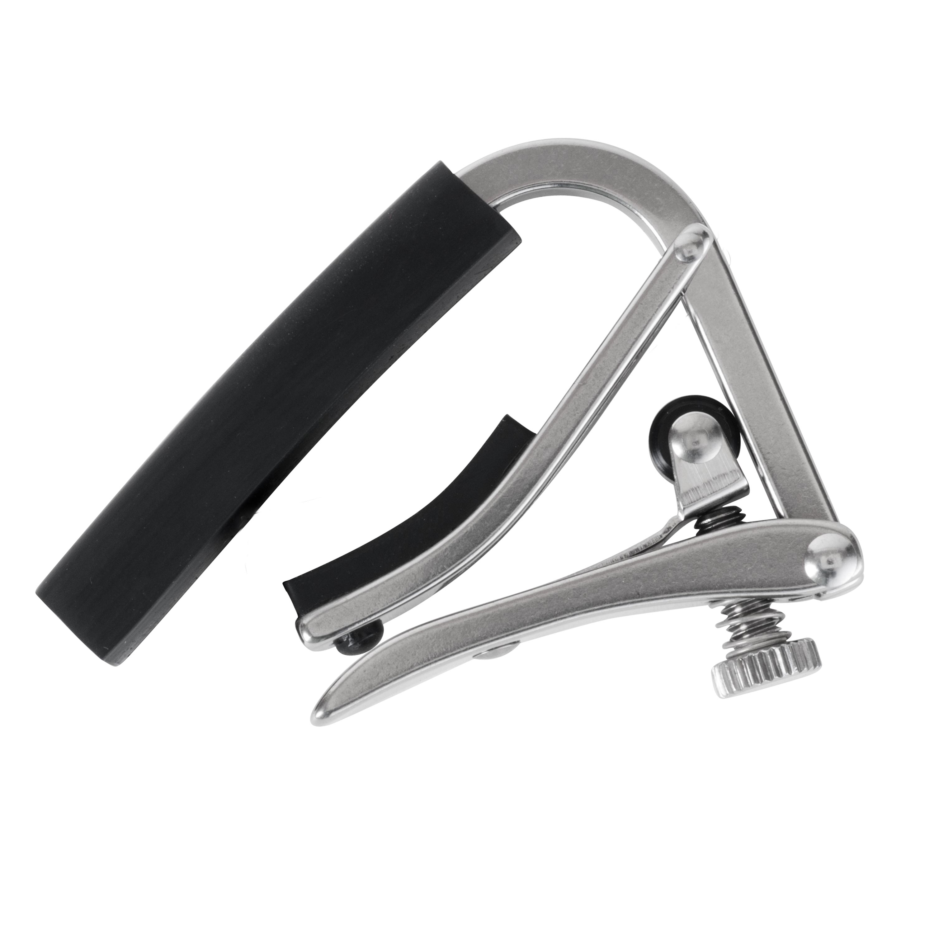 Simply adjust the pressure with the thumbscrew, and flip the hinged bottom lever for fast repositioning. The Shubb Deluxe capo is crafted of high quality stainless steel and features extra-smooth roller action. The rubber sleeve and radiused bar are designed for firm clamping without tuning distortion.