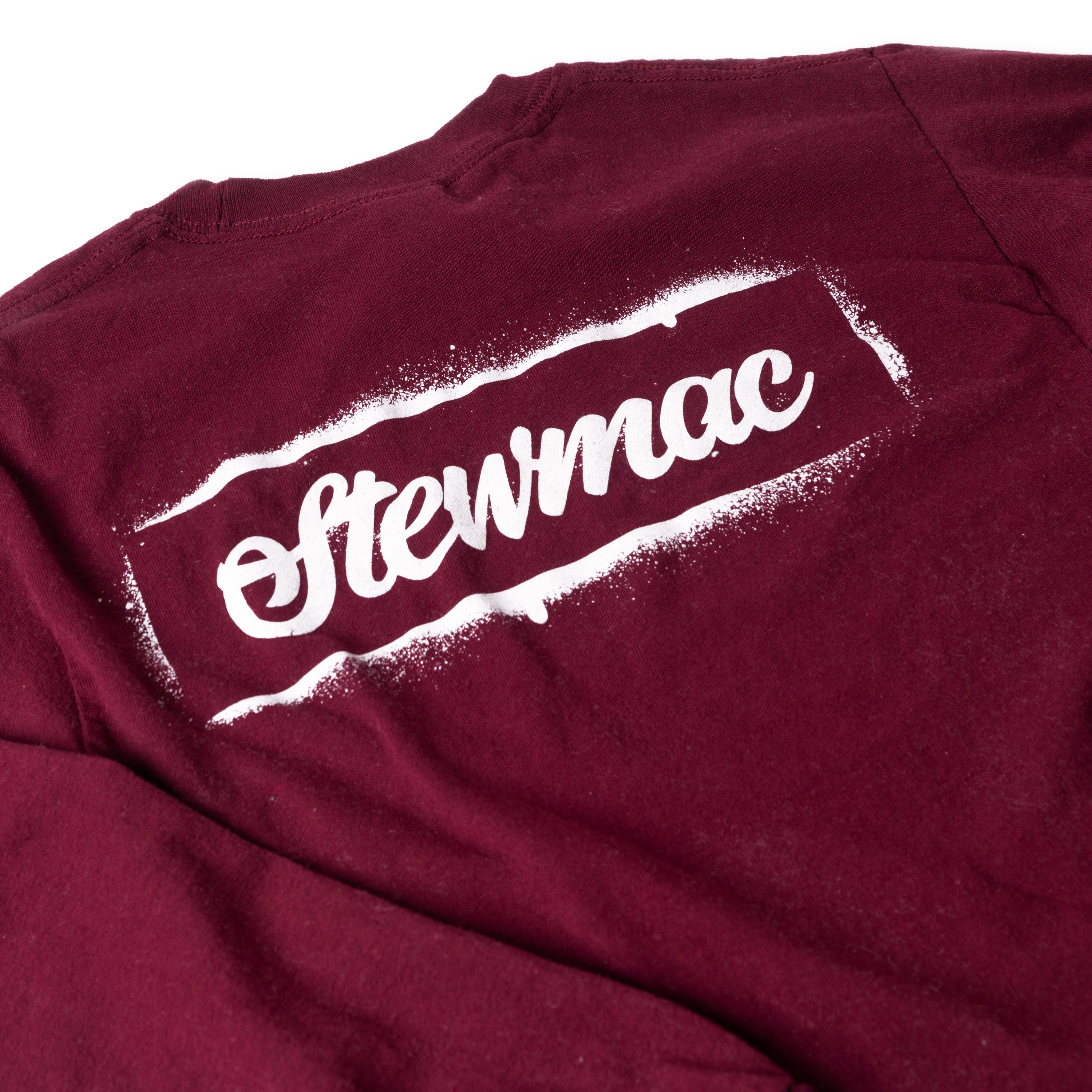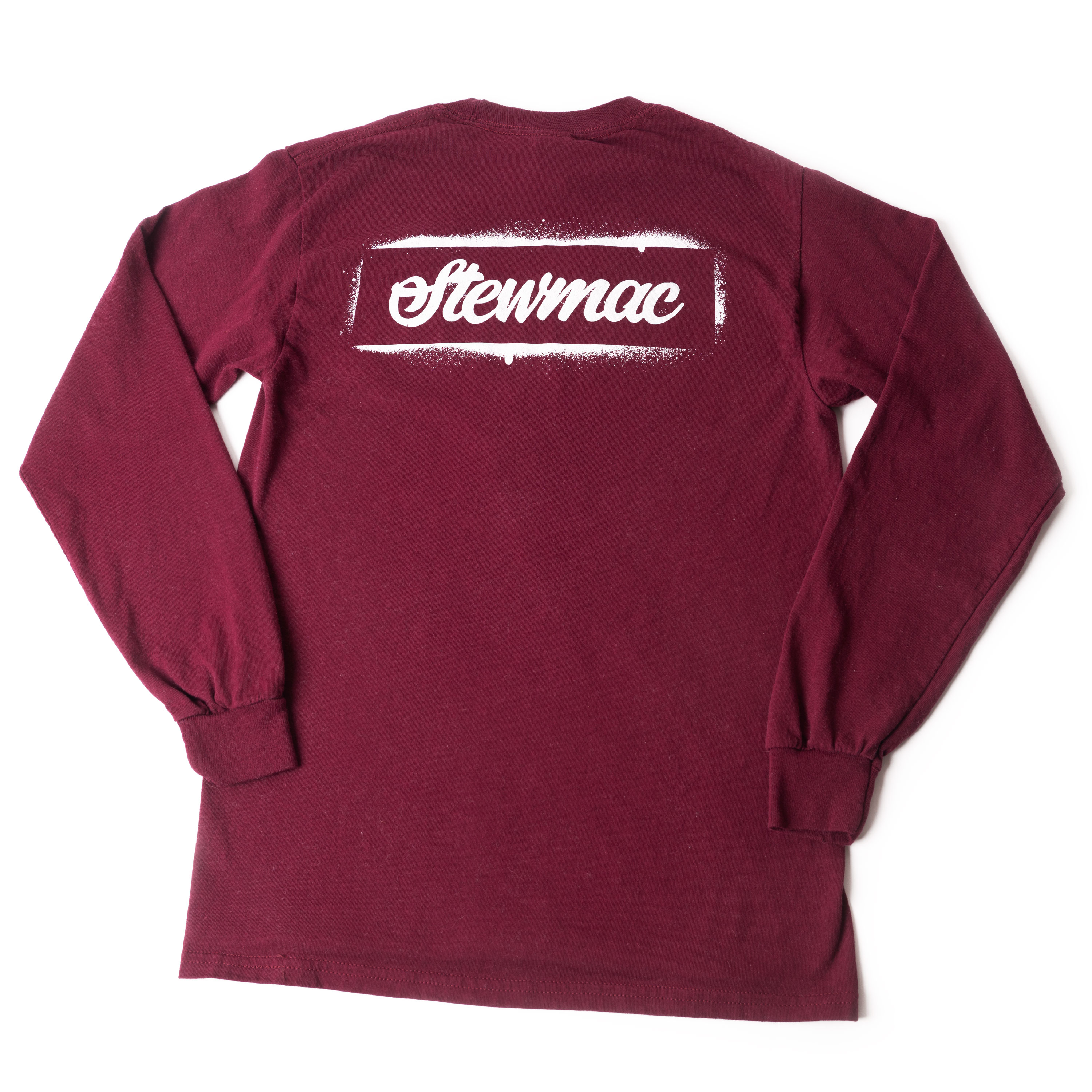Our StewMac by Matthew Carey long sleeve tee puts a stylized twist on our script logo.
