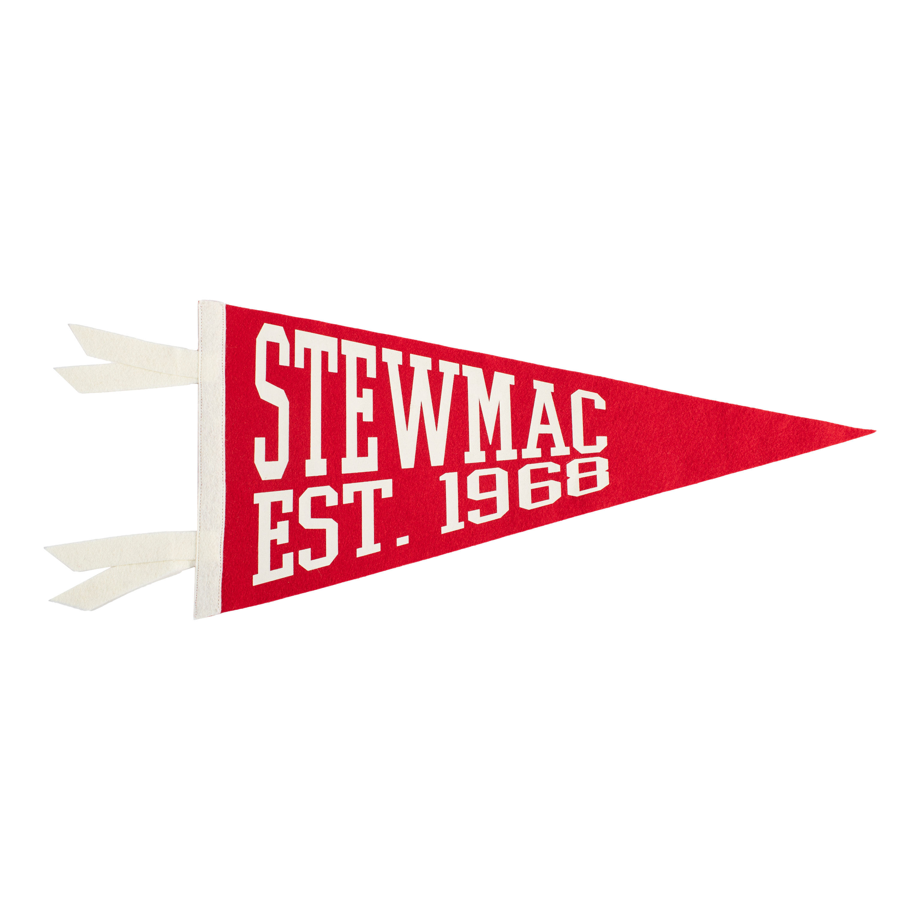 Bring a touch of vintage charm to your workshop, studio, or jam space with our Retro StewMac Felt Pennant. Measuring 9x18, this throwback piece was handmade and screen printed by Pennant for Your Thoughts, a small shop specializing in camp flags and vintage-inspired pennants.
