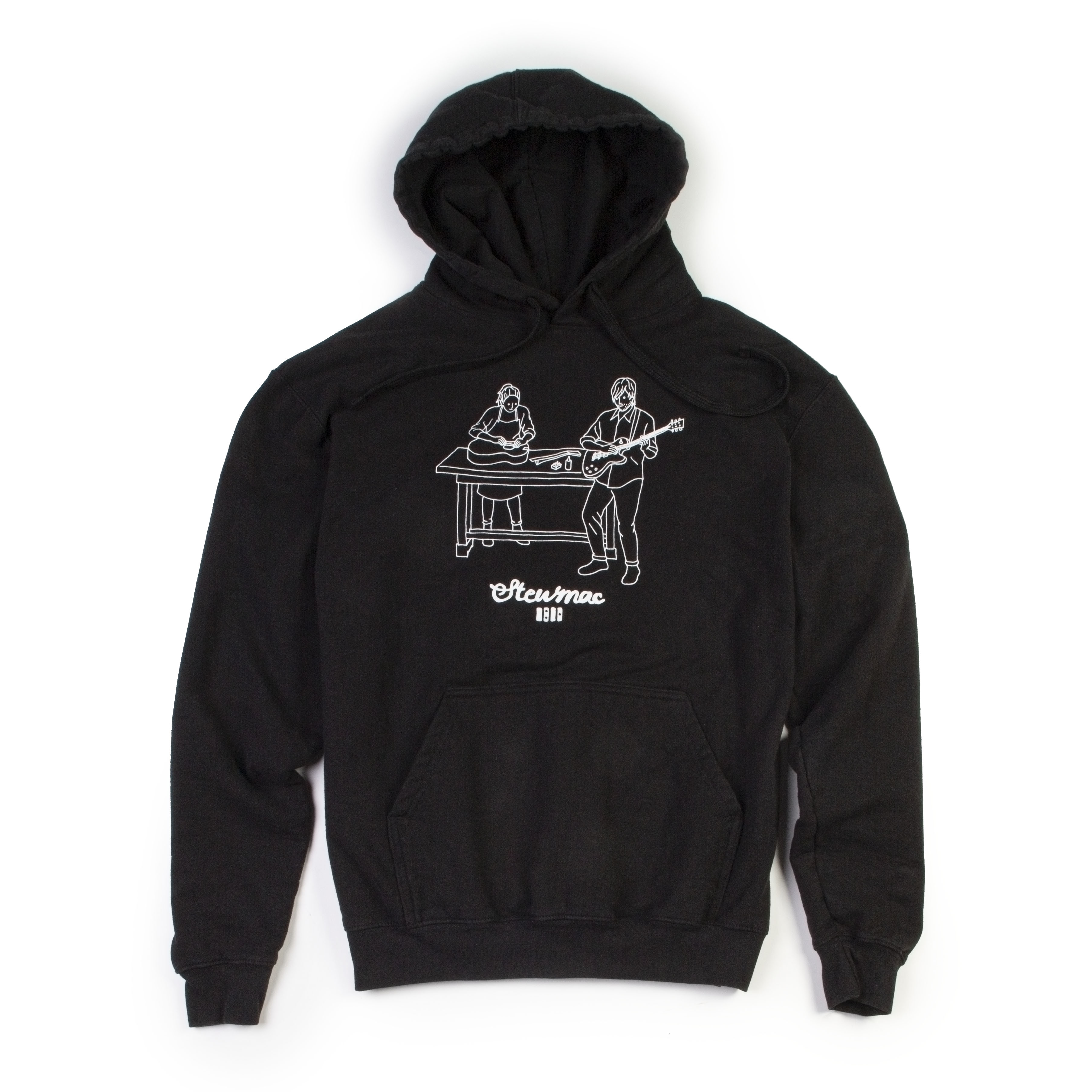 Our StewMac by Shogo Ogoshi pullover hoodie depicts a definitive snapshot of a day in the life of a StewMac luthier.