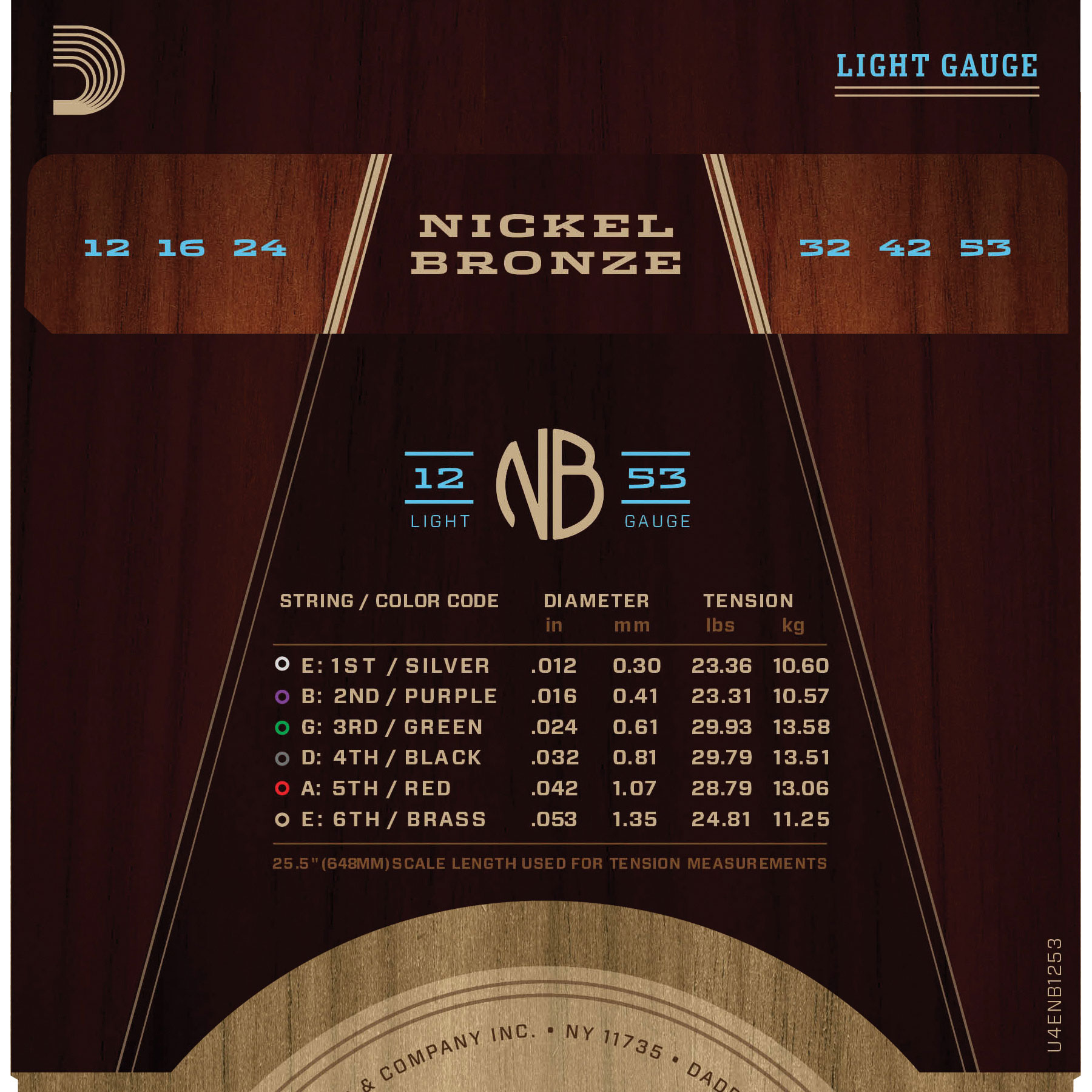 #10532 - D'Addario Nickel Bronze Acoustic Guitar Strings, Light (NB1253)