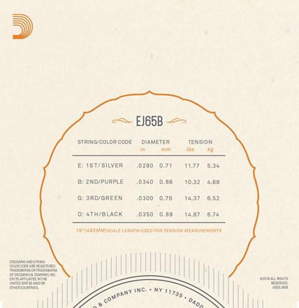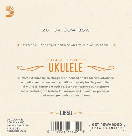 D'Addario EJ65B strings are designed specifically for baritone ukuleles. The 3rd and 4th string are a silver-plated copper wound on nylon and complimented by a 1st and 2nd Pro-Arté Custom Extruded clear nylon strings.