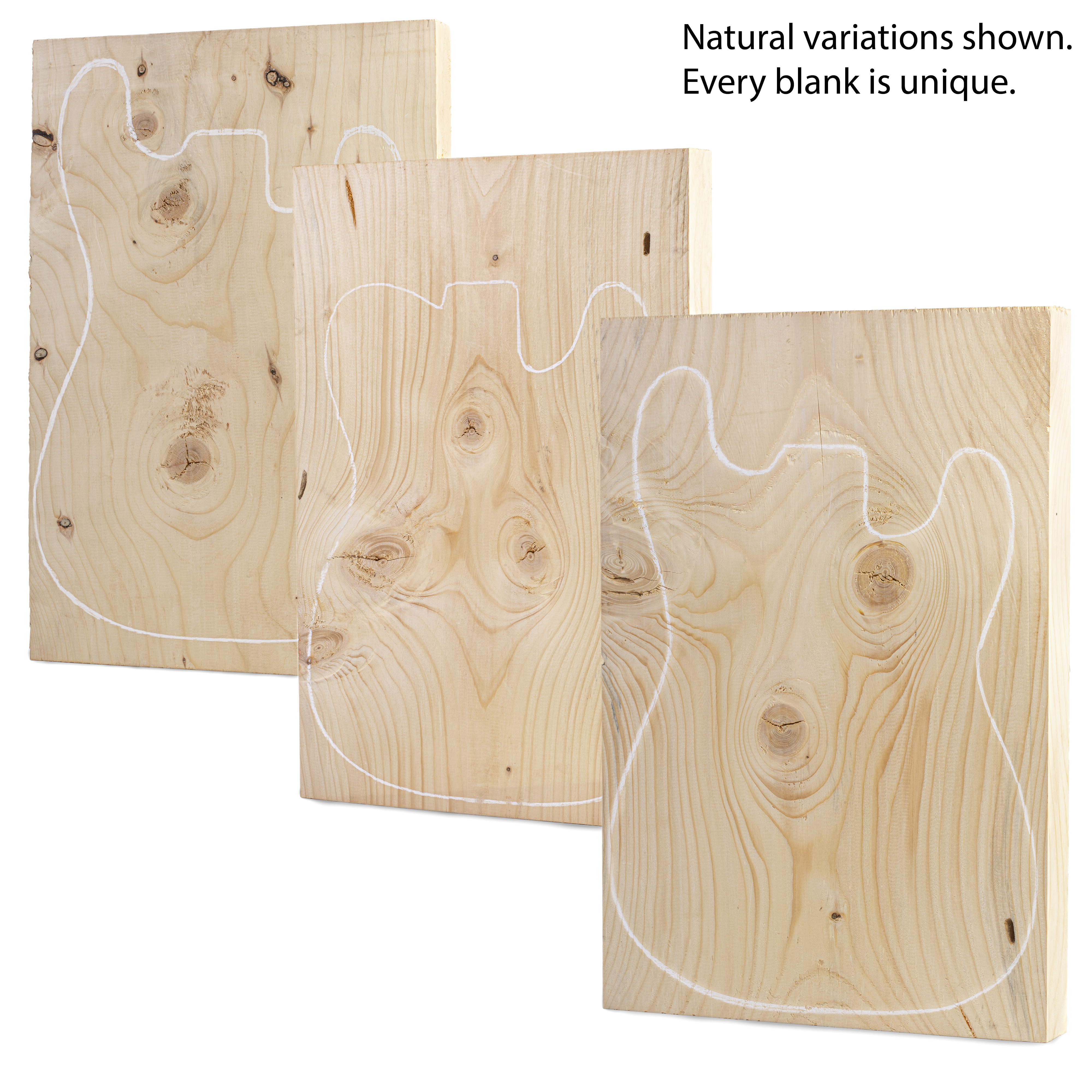 Knotty Pine works easily with both hand and power tools. The closed grain takes glues and finishes well—you can also choose to fill any voids, knots, or splits with epoxy or super glue. While you can fill and paint for an amazing lightweight body, we appreciate it's bold character and often just use clear lacquer to seal it and wire it up!