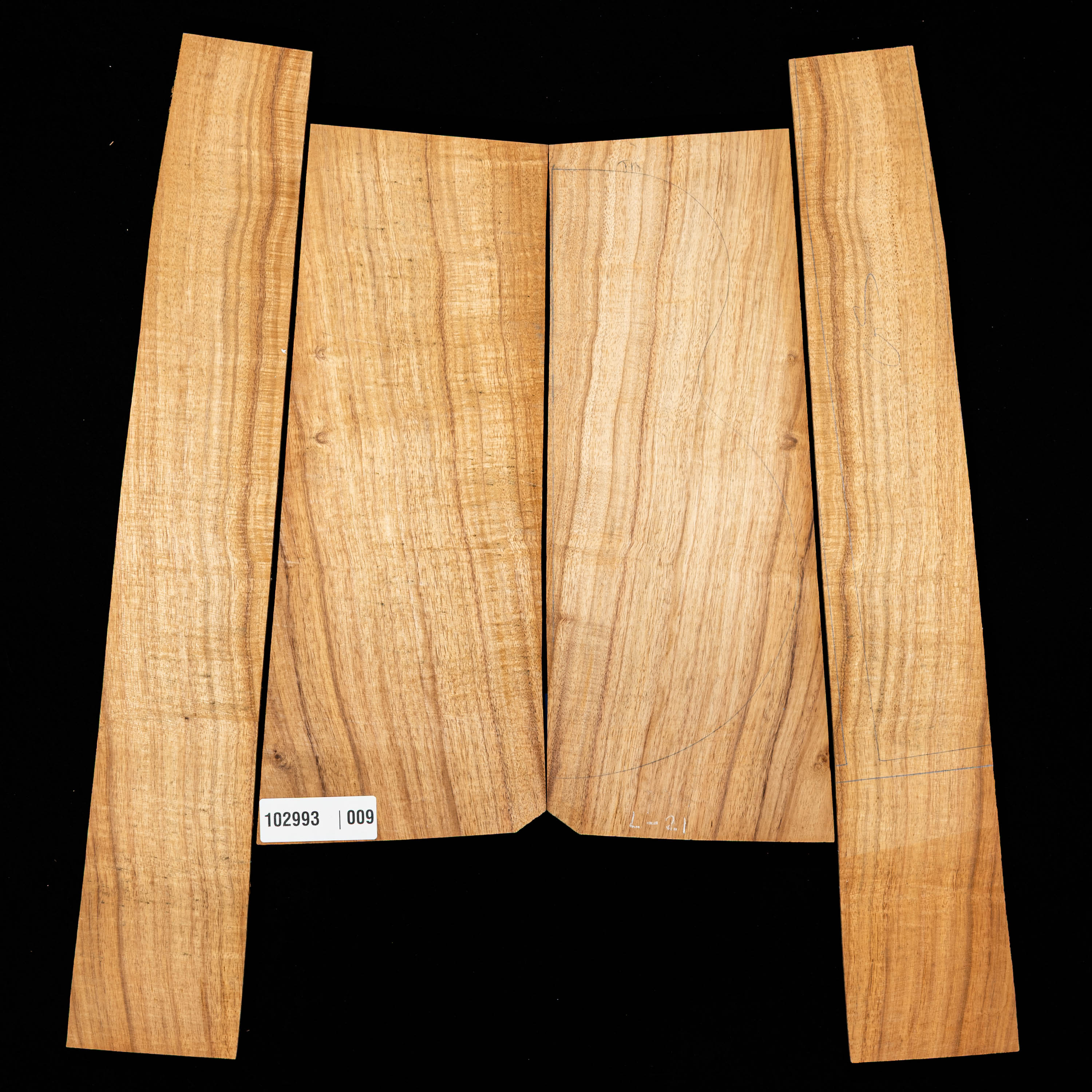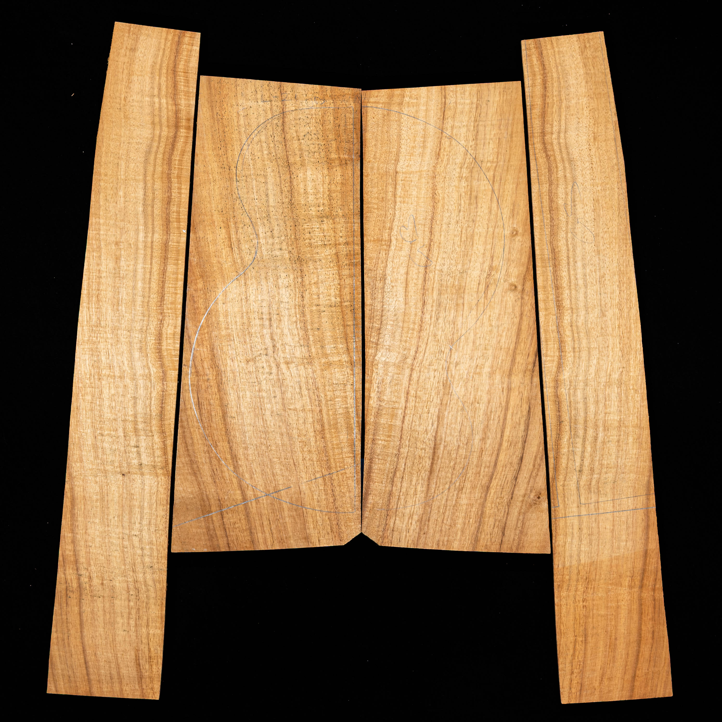 Originating in the Hawaiian Islands, Koa is a dense tropical hardwood that has been used for guitars and ukuleles since the 1920s. It is known for its rich visual character, with colors ranging from golden amber to deep browns, blacks, and occasional hints of purple. While highly figured Koa is especially prized, even more subtle sets like these offer a refined and timeless appearance.