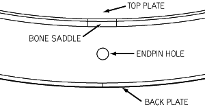 1 Fit a bone saddle as illustrated. The saddle should measure 1" in length and be fitted flush with the body binding on all sides. It is important to round over the edge of the saddle. |