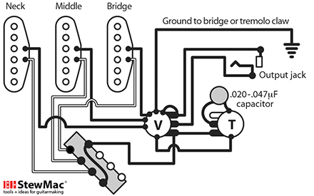 Strat® wiring, 3 single-coil pickups & CRL switch