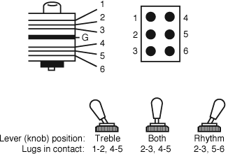 Lug 5: Hot to output jack, switched output