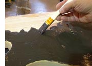2. Brush on the prepared ColorTone Powdered Grain Filler liberally in the direction of the grain, then against it. Allow to dry for 5 to 10 minutes depending on thickness of the prepared filler. |