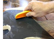 3. Use a grain filler spreader or plastic card to squeegee off excess filler. Wipe at a 45 angle to the grain. |