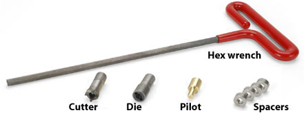 | Cutter Removes wood around the truss rod, exposing the rod and making room for the thread-cutting die. |