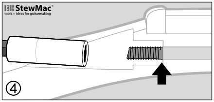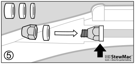 Step 5 Use a spacer to cover that last bit of unthreaded rod and to provide a metal bearing surface. On Fender necks, use the .040" thick spacer. Gibson guitars generally will need a .100" thick spacer. In some cases, the .200" thick spacer will be needed.